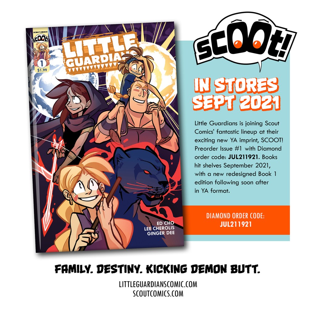We have some exciting news to share! Our publisher Scout Comics is incorporating Little Guardians into its lineup of YA focused comics under its SCOOT! imprint! We’ll be getting a brand new Issue #1 in stores September 2021 (preorder now!) and new YA format editions of Books 1 and 2 following after. Book 3 is in progress and will be resuming regular updates on our Patreon and will be published in the new YA format following Book 2.